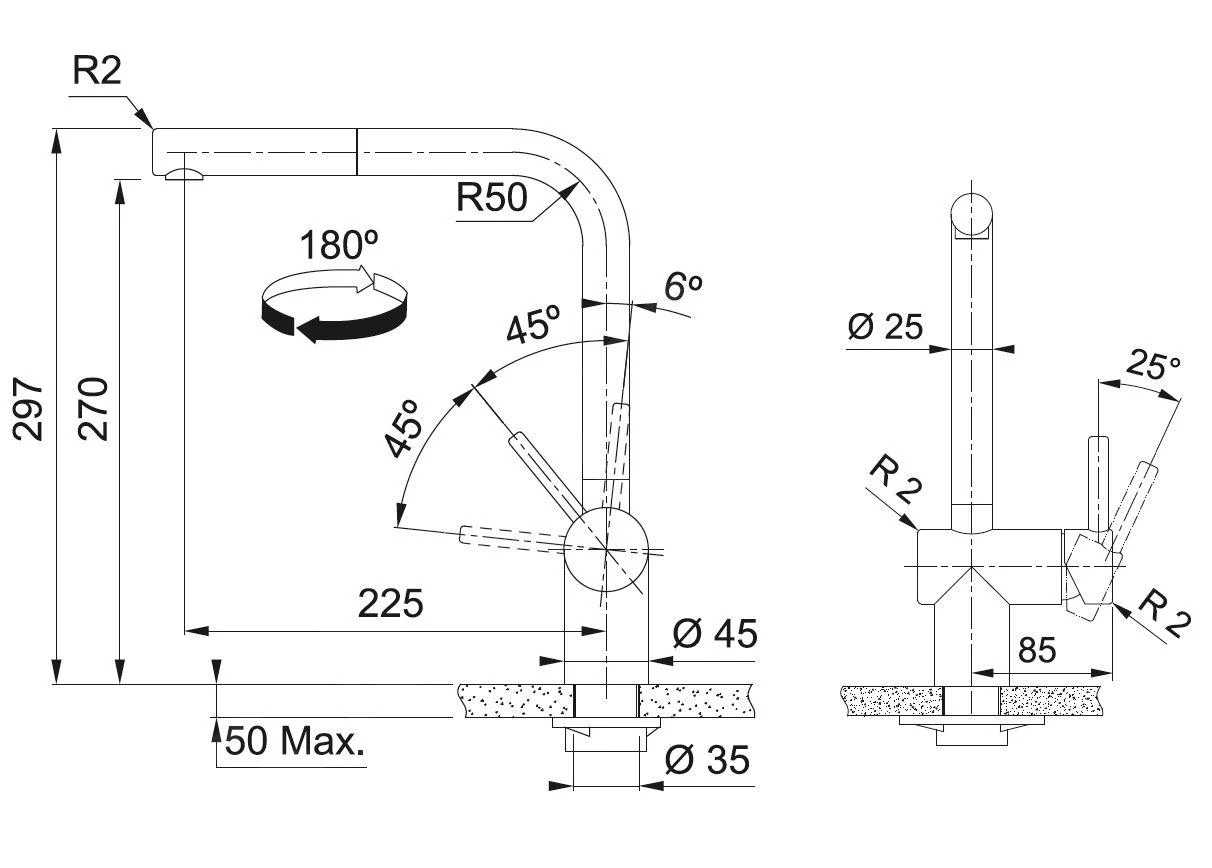 - Armaturhöhe 297 mm