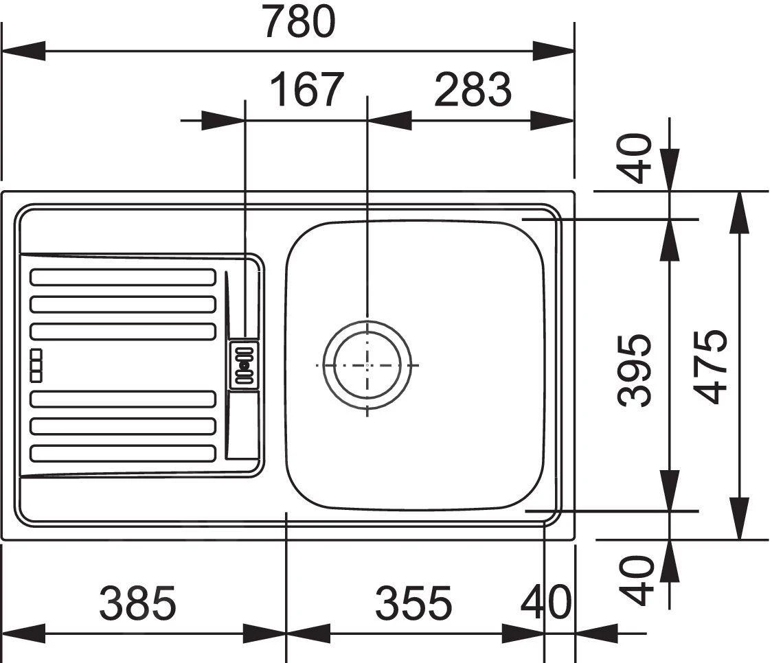 - Spüle: 355 x 395 x 150 mm