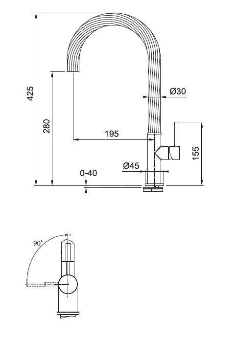 - Auslaufhöhe: 425 mm