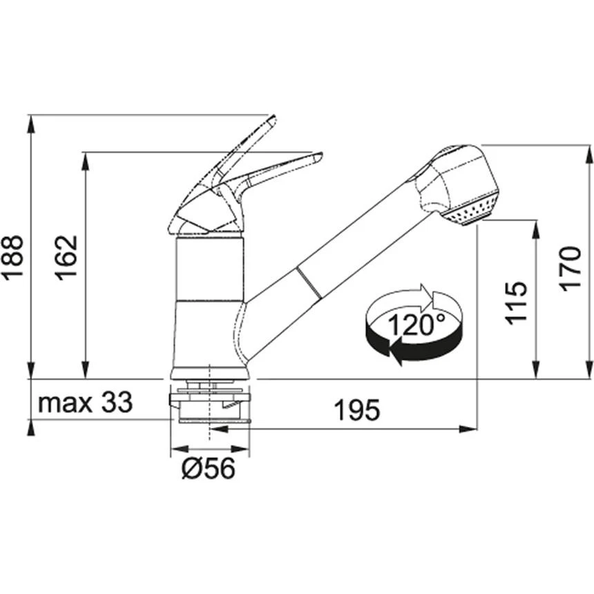 - Höhe der Armatur 188 mm
