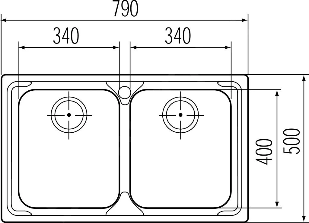 - Küchenspüle 2 × 340 × 400 × 185 mm