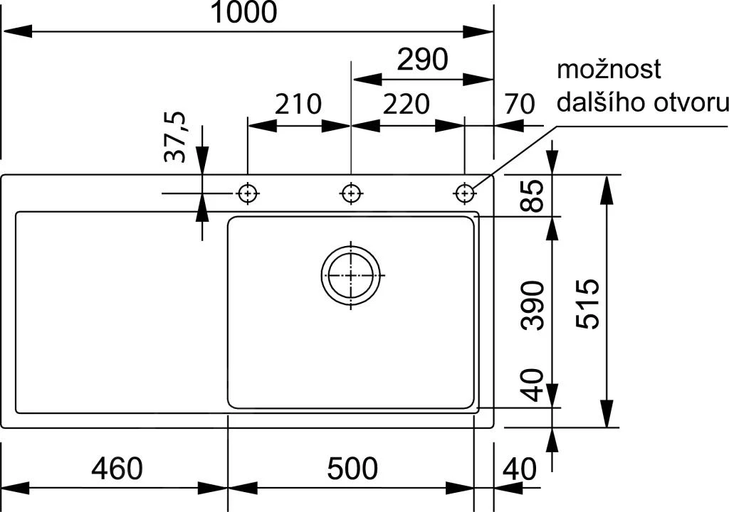 Abmessungen: 1.000 × 515 mm