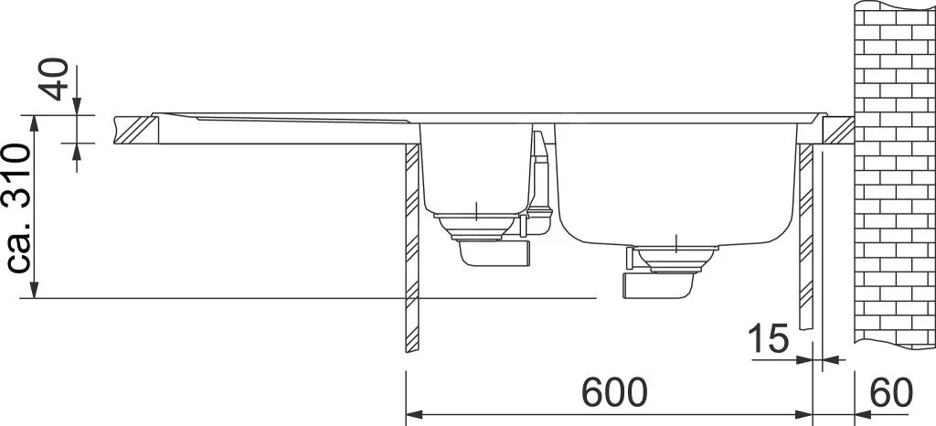 – platzsparendes Siphon 6/4“ mit Abzweigung zum Geschirrspüler