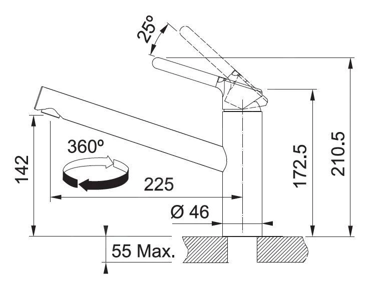 - 2 Positionen des Hebels – 50% Wassereinsparung