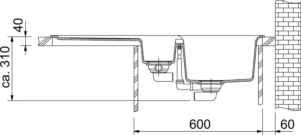 – platzsparendes Siphon 6/4“ mit Abzweigung zum Geschirrspüler