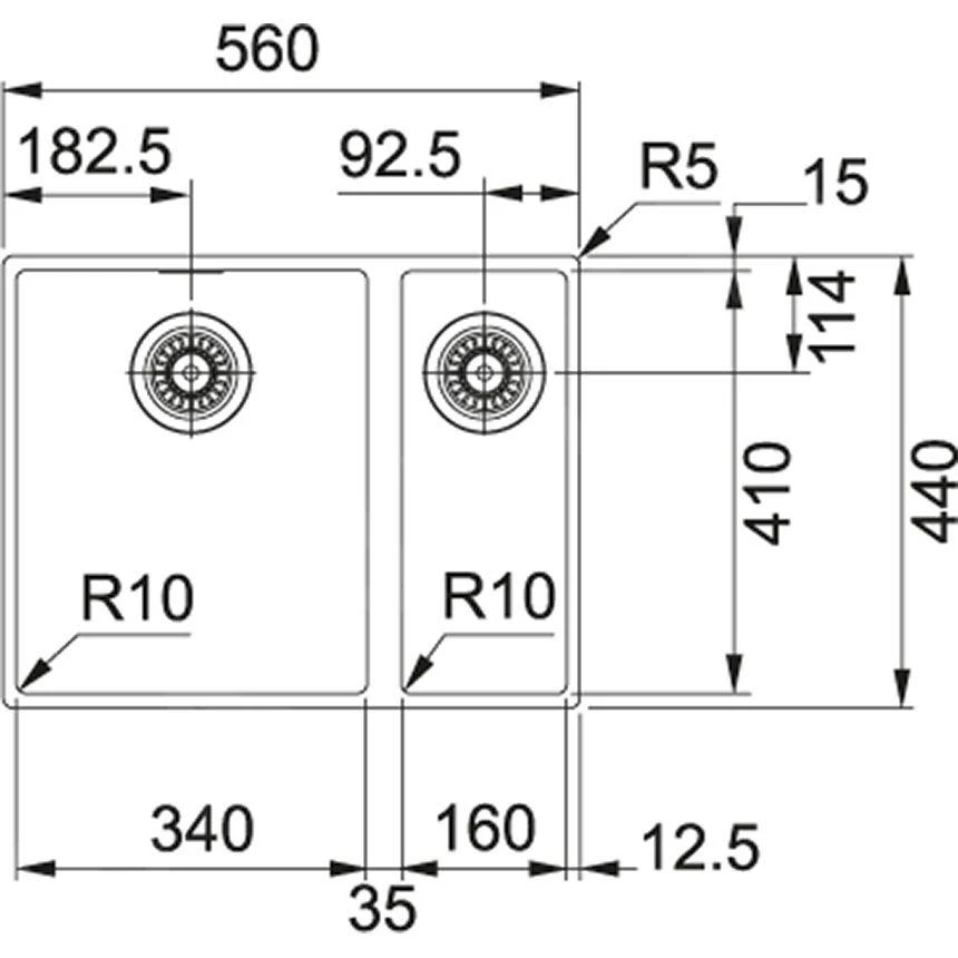 Küchenspüle SID 160/2, ohne Abtropffläche
