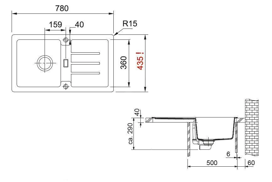 Fragranit Spülbecken STG 614-78, obere Montage