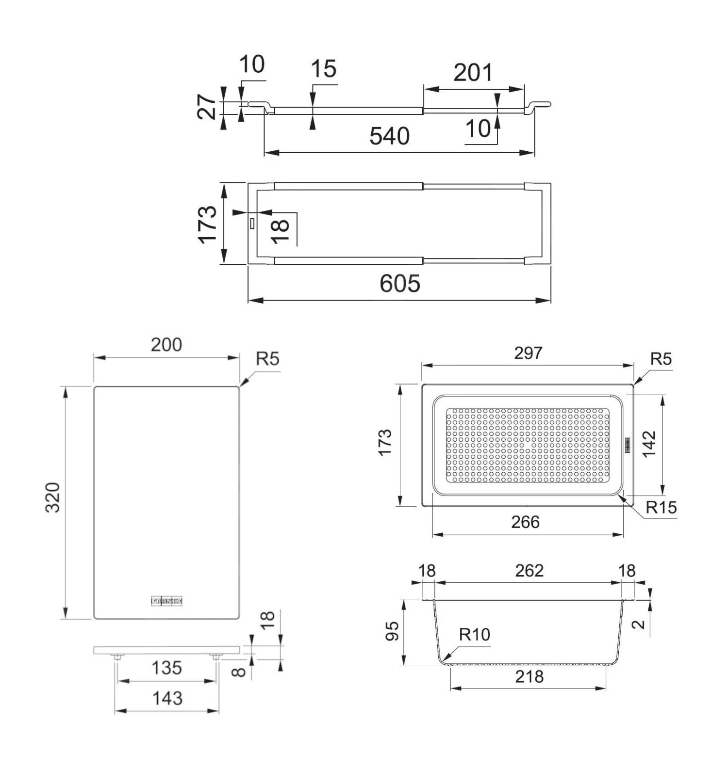 - 1x Teleskopische Schiene, kann an die Länge/Breite der Spüle angepasst werden (Abmessung bis 540 mm)