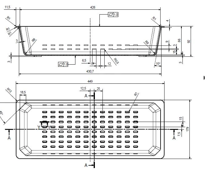 - Abmessungen 449 × 179 × 92 mm